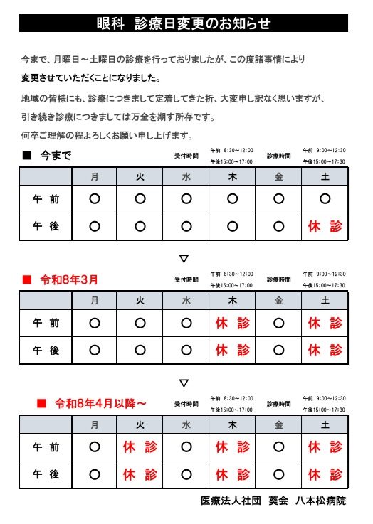 眼科診療日変更のお知らせ