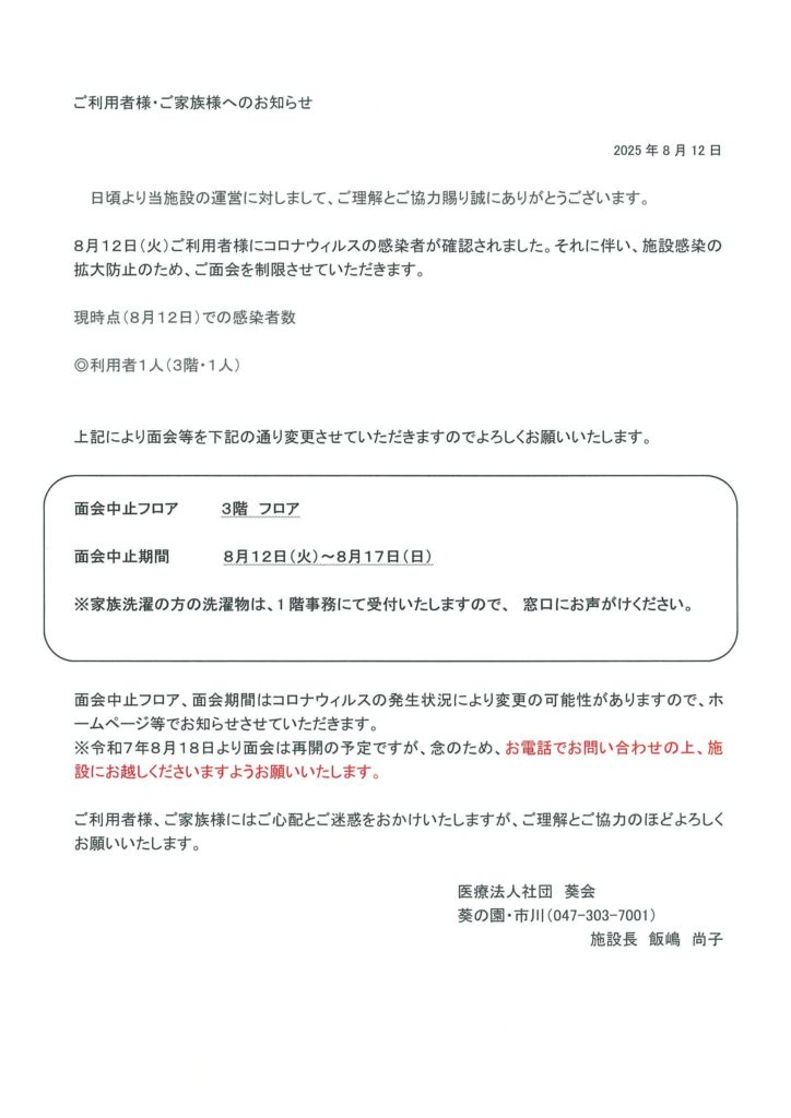 面会中止のお知らせ