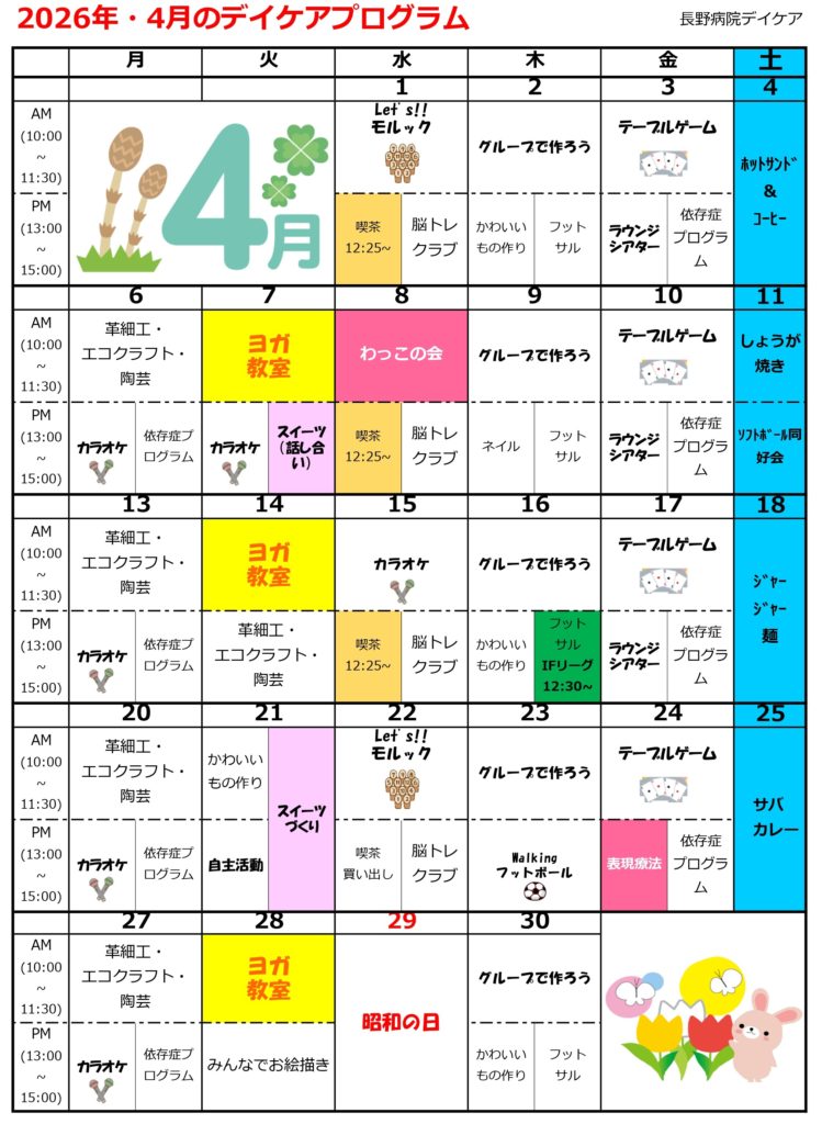 デイケア 4月カレンダー