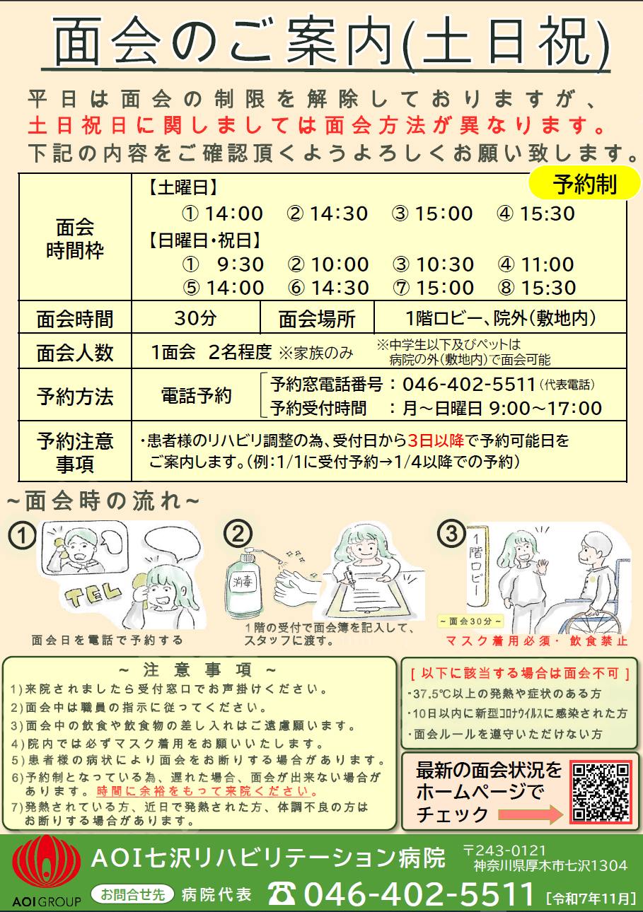 面会のご案内(平日)←こちらをクリック頂いても拡大されます。