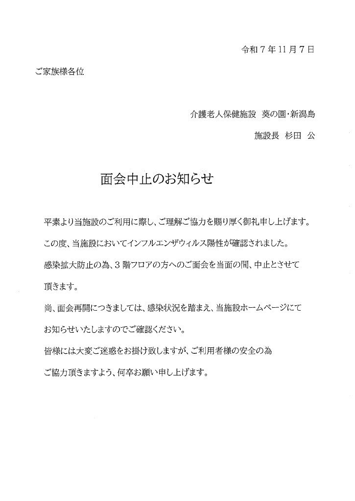 面会中止のお知らせ