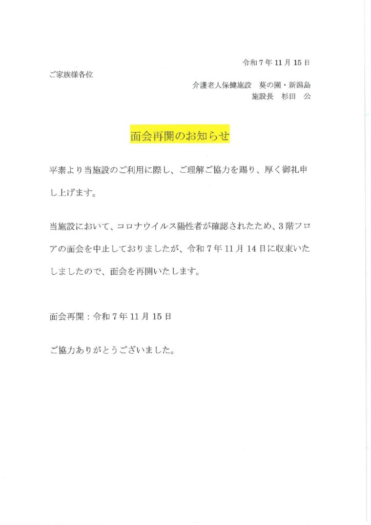 面会再開のお知らせ