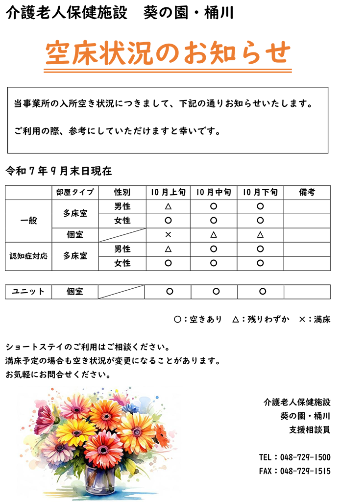 空床状況のお知らせ