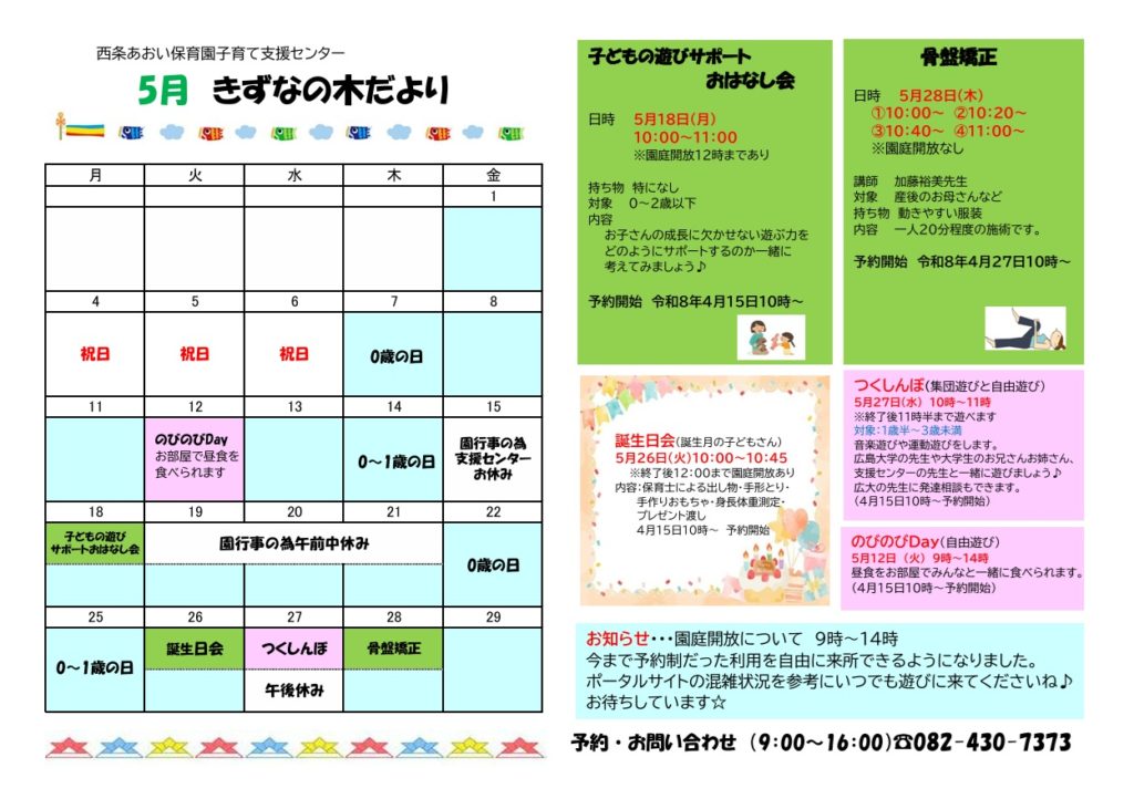 子育て支援センター きずなの木よりお知らせです。きずなの木だより05月号が発行されました。
