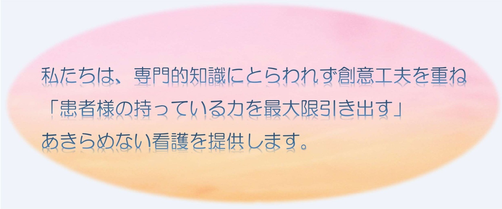 理念・基本方針 看護部 理念 看護部 基本方針患者様と共感し自ら考え創意工夫を重ねた看護を提供します。専門職としての誇りと責任を持ち、自己研鑽します。患者様のニーズを捉え、気配りのある看護を提供します。医療従事者としてのふさわしい倫理的行動に努めます。