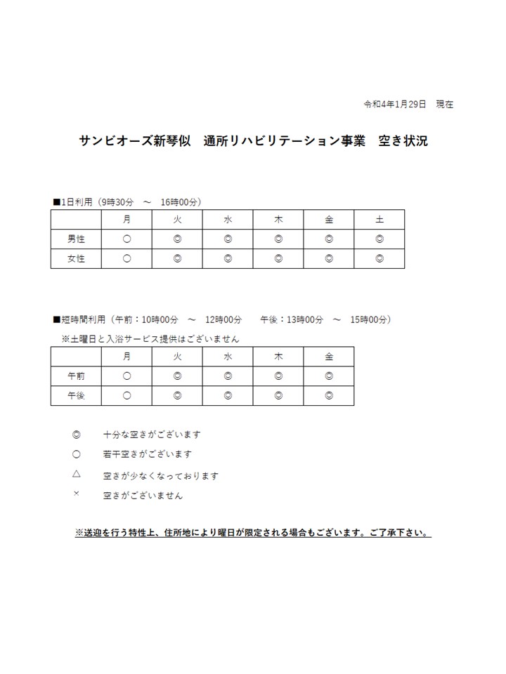 通所リハビリテーション事業 2月空き状況について