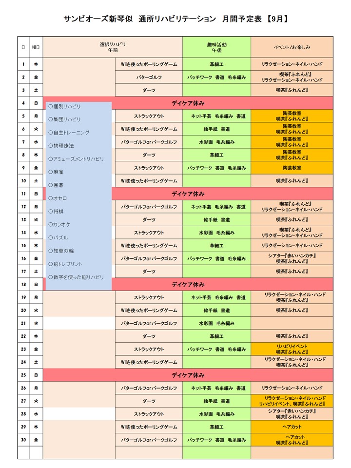 通所リハビリテーション事業 9月の活動内容について