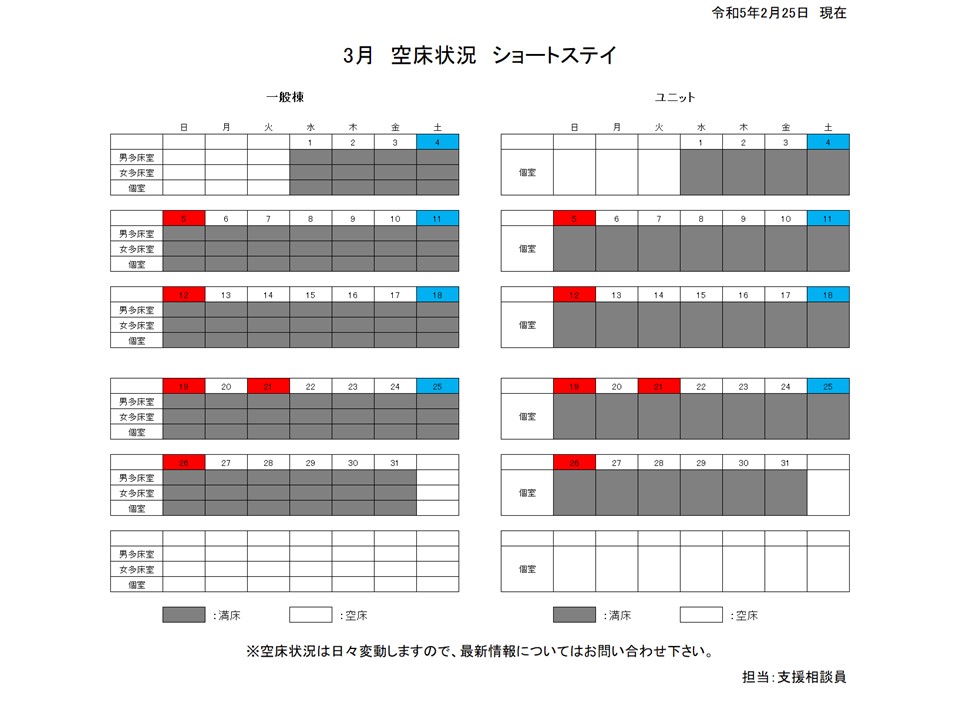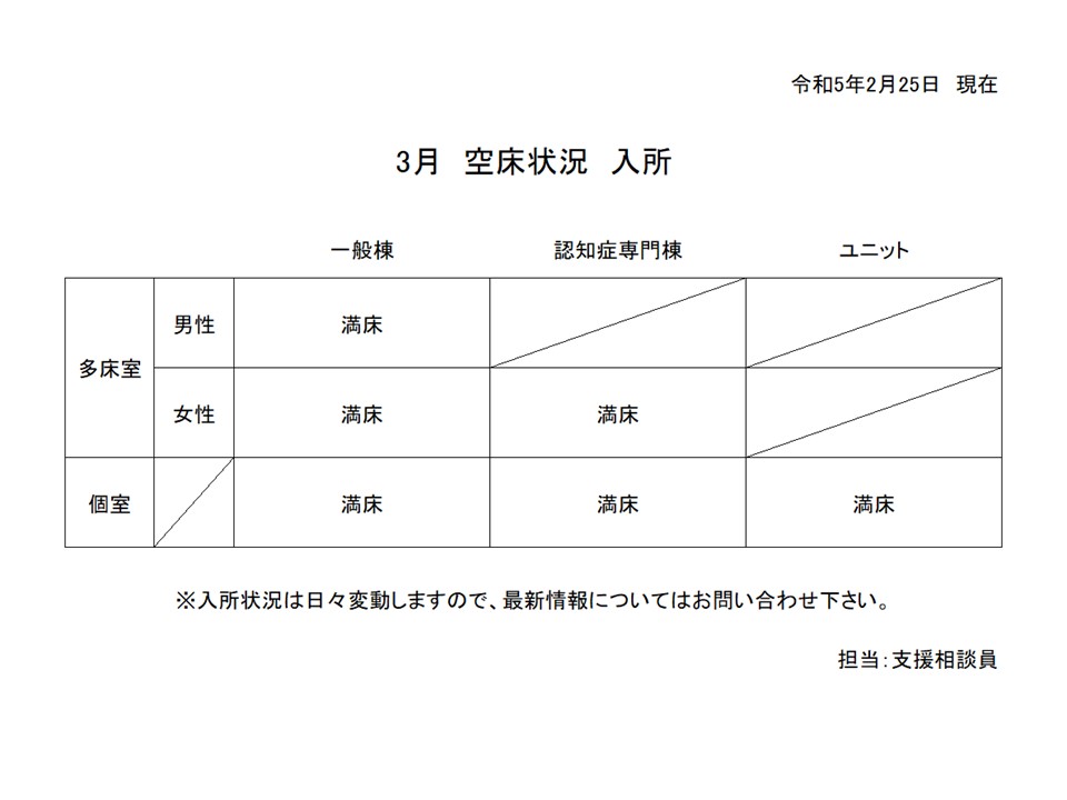 入所事業 3月の空床状況について