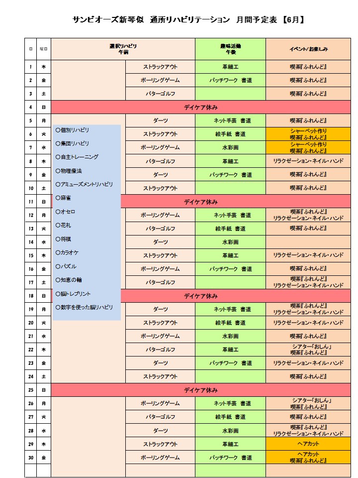 通所リハビリテーション事業 6月活動案内について