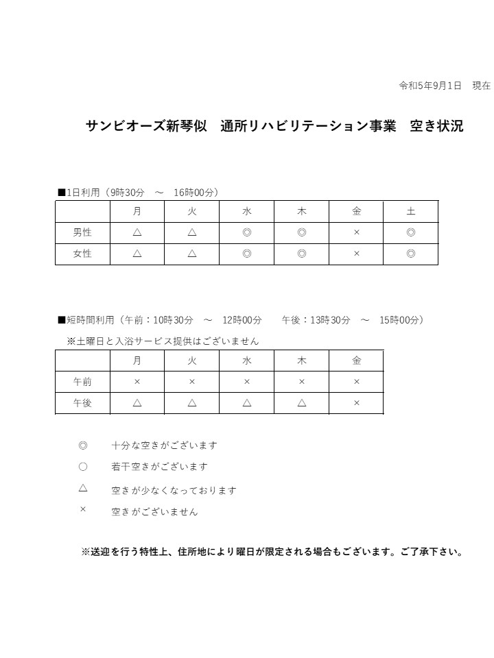 通所リハビリテーション事業 9月の空き状況について