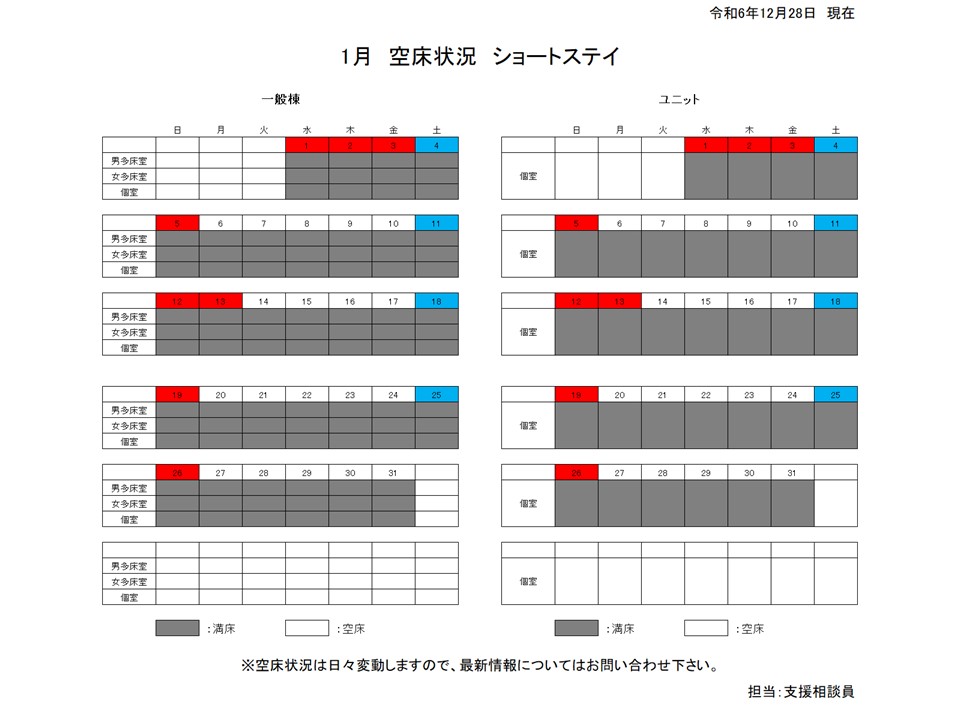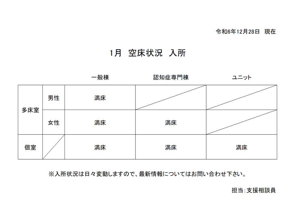 入所事業 1月の空床状況について