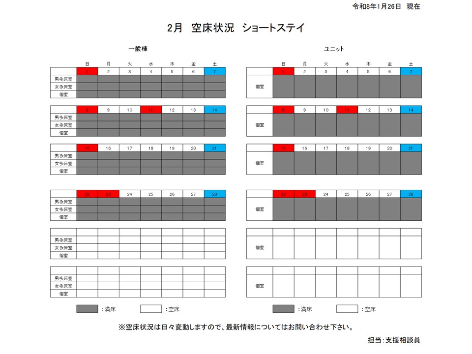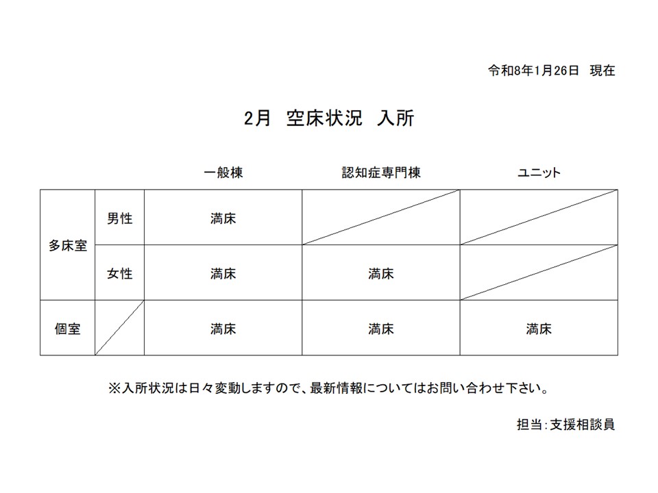 入所事業 2月の空床状況について