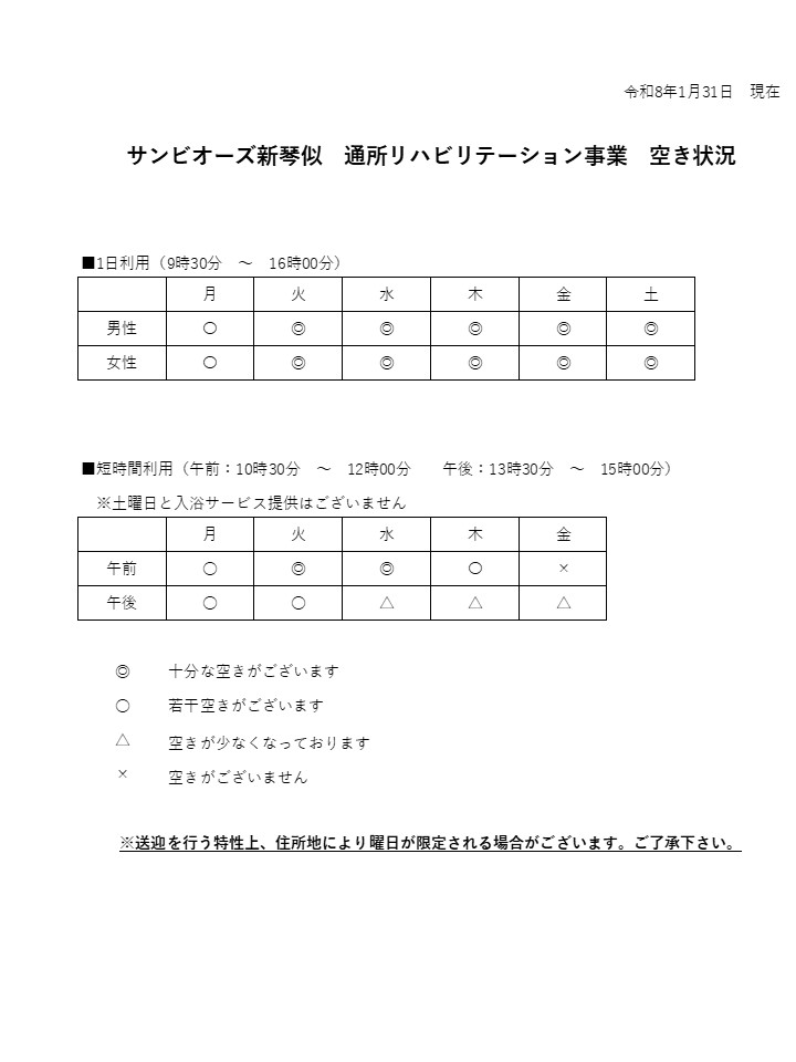 通所リハビリテーション事業 2月の空き状況について